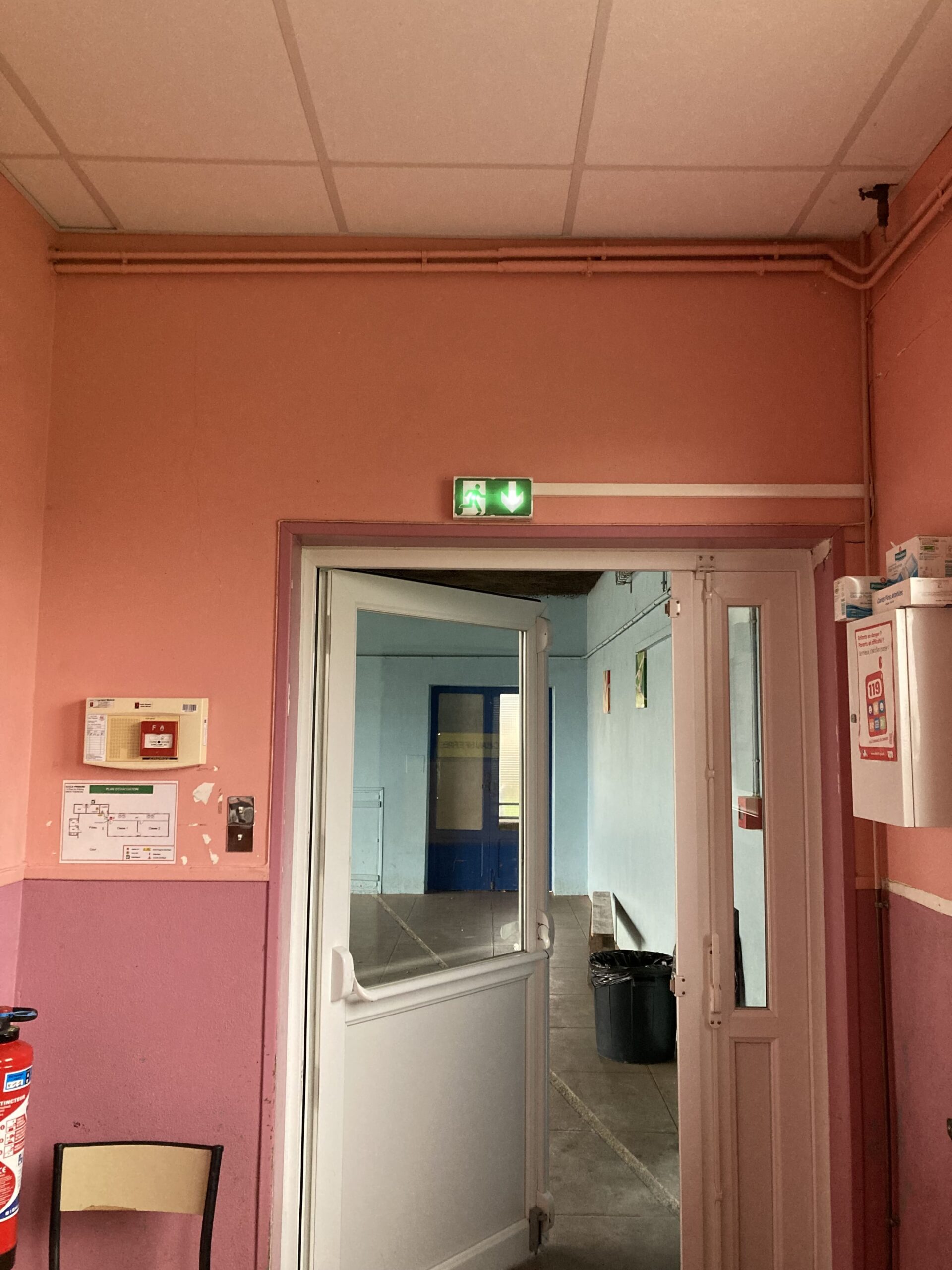 Bloc Autonome d’Éclairage de Sécurité : dispositif autonome avec batterie permettant d’éclairer les sorties de secours en cas de défaillance de l’électricité.
